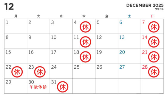 12月、1月の休診日のお知らせ